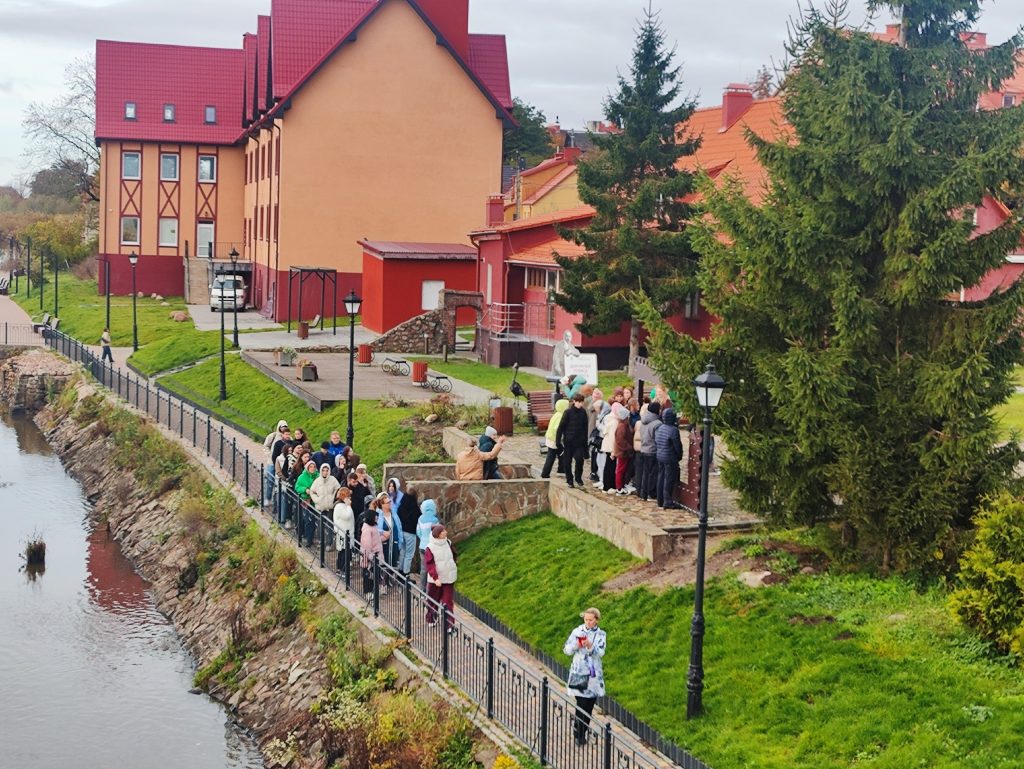 Следующим на нашем пути был город Славск с красивейшей кирхой и бассейном с минеральной водой. Увы, бассейн был пуст, всё-таки осень уже, поэтому здесь мы не задержались, удовольствовались рассказом и поверили на слово.