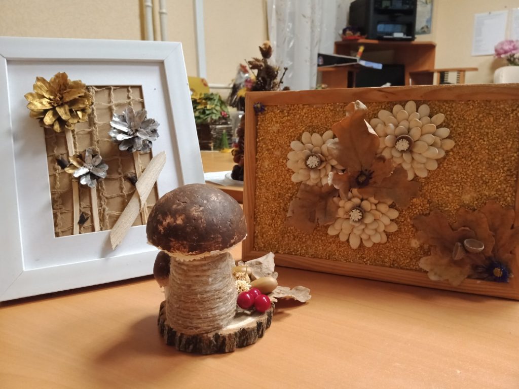 Призы и подарки ,благодаря БФ ” Детский мир”, получили дети -участники конкурса ” Осенние фантазии”. Все ребята принесли на выставку чудесные работы из природного материала, проявили , действительно, полет фантазии.