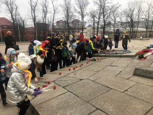 Сначала участники отправились на автобусную экскурсию по городу, погрузившись в историю Кёнигсберга, нашей области и страны, узнали интересные факты о памятных местах, потом возложили цветы на мемориале 1200 гвардейцам – братской могиле погибших при штурме Кёнигсберга солдат.