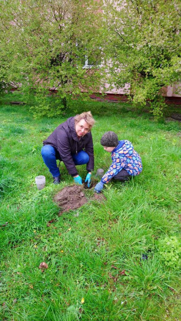 И сегодня многодетные родители нашей организации высадили “кедрят”, выращенных в питомнике ” Зеленоградское кедры”, на территории Дома ветеранов.