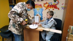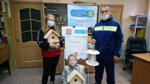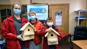 10 октября 2020 года в офисе организации (ул. Чайковского, д. 2) состоялся мастер-класс по изготовлению скворечников и кормушек для птиц. В нём приняли участие папы и сыновья – участники проекта. В результате совместной работы появились 16 кормушек и скворечников, которые будут переданы в дар городским паркам.