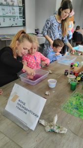21 сентября прошёл заключительный семейный мастер класс “рисование в технике Эбру” Каждый участник создал не менее трёх картин на воде, а после перенесли свои шедевры на бумагу.