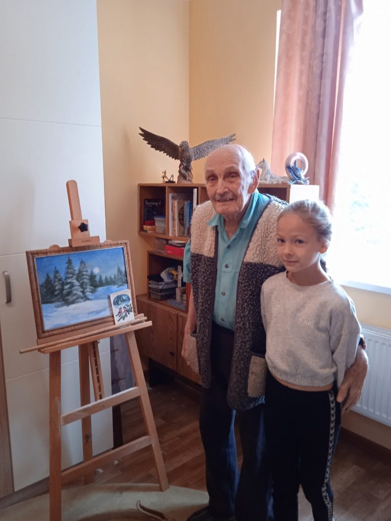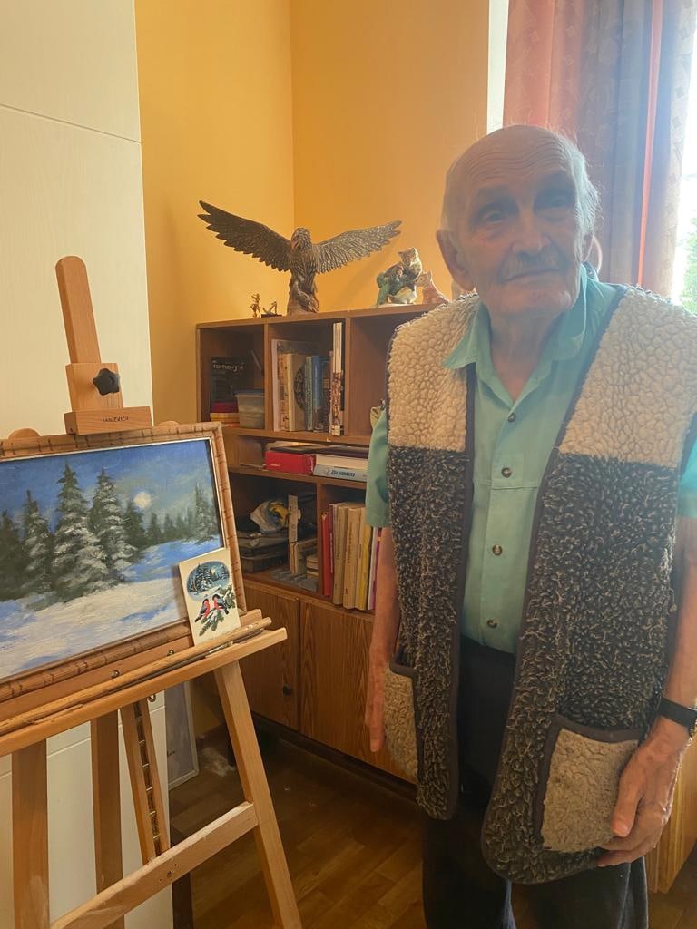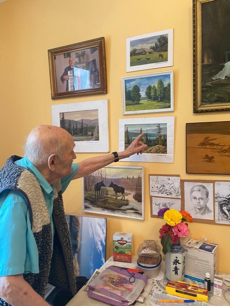 Леонид Алексеевич Малолкин в свои 98 лет, продолжает писать картины. Рассказал нам о местах где он побывал и которые запечатлил в картинах. В библиотеке Дома ветеранов у Леонида Алексеевича есть своя выставка картин с биографией!